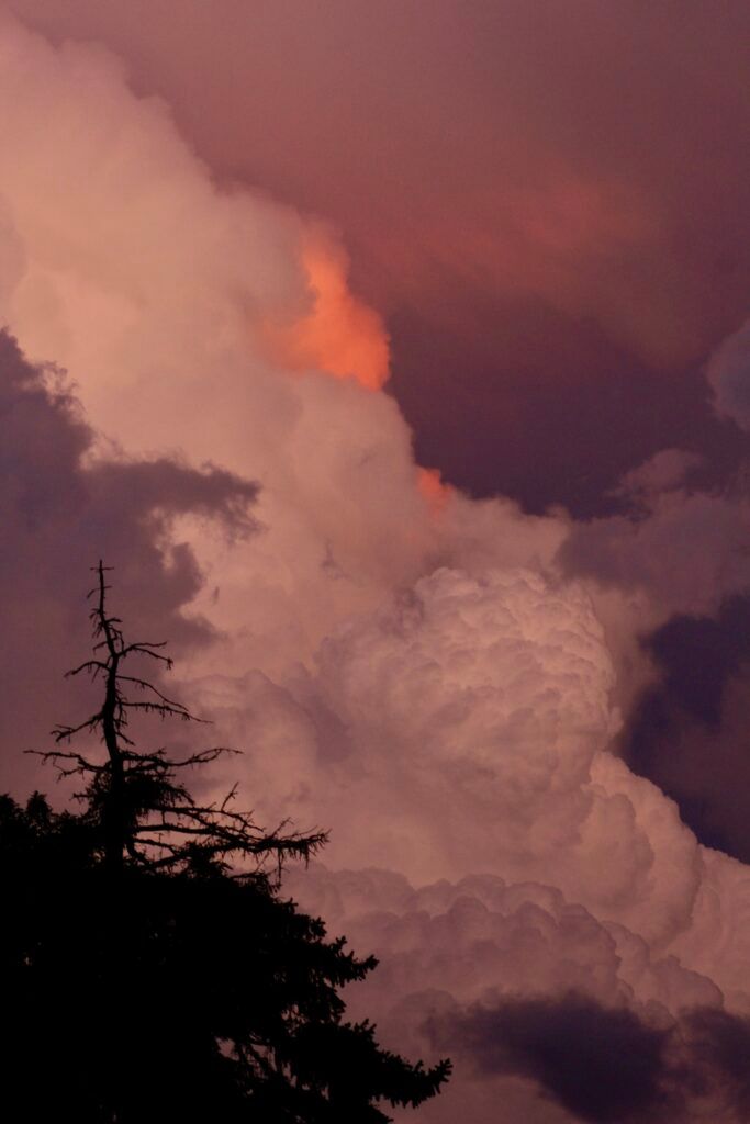 As a storm approached, a tiny patch of sunset reflected in its clouds.